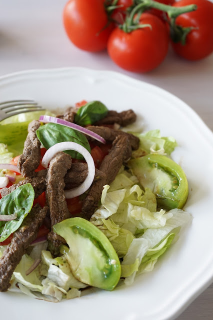 Une salade avec la chaleur qui revient aujourd'hui ! Le boeuf se marie à merveille avec les saveurs asiatiques et le croquant de la salade.