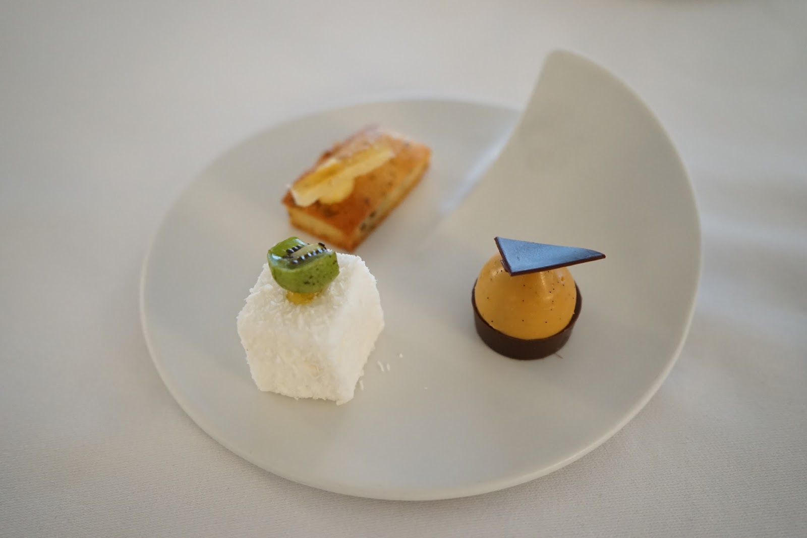 Pour commencer une petite tarte aux cèpes, des croquettes de brebis et coulis de kiwi, crème butternut et café