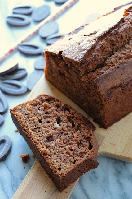Le banana bread est un cake que l'on voit un peu partout mais c'est une première pour moi. J'ai choisi une version gourmande avec une pâte au chocolat. Nous avons adoré ce cake, très très moelleux, il est parfait pour éviter le gaspillage (surtout si vous avez des bananes à utiliser). Je pense déjà à la prochaine version au beurre de cacahuète !