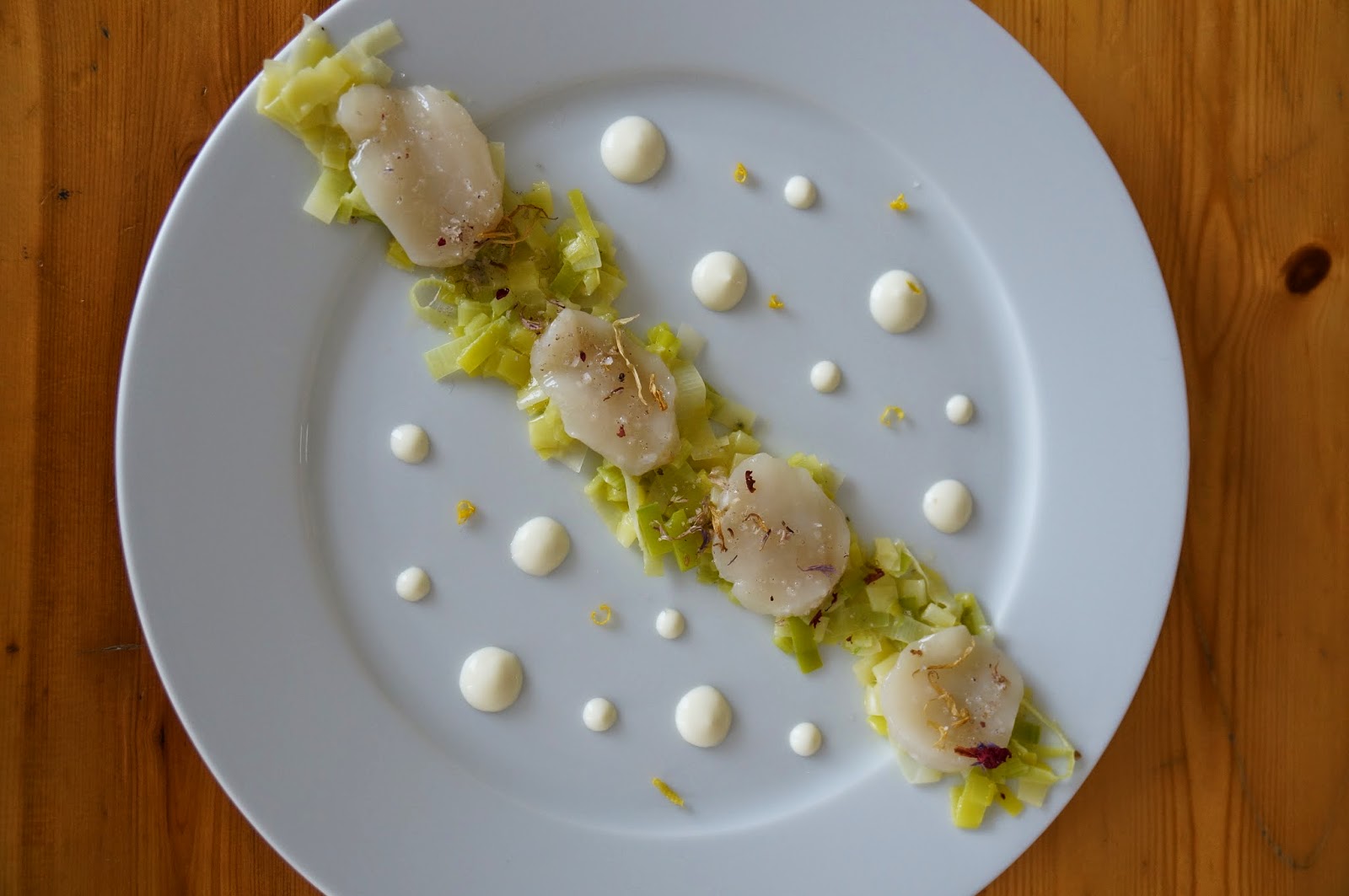Carpaccio de Saint-Jacques sur fondue de poireaux et crème citronnée