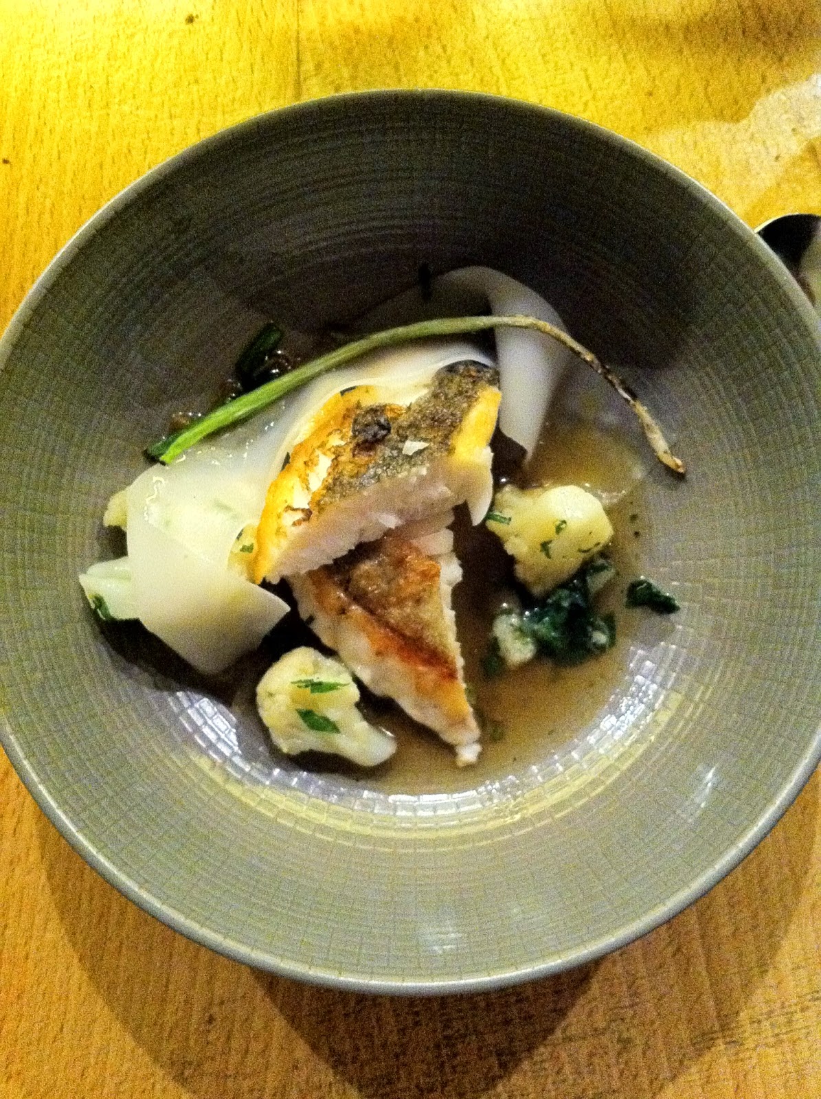Saint Pierre, bouillon aux crevettes fermentées, épices et citronelle,  chou-fleur menthe-coriandre, pâte de riz