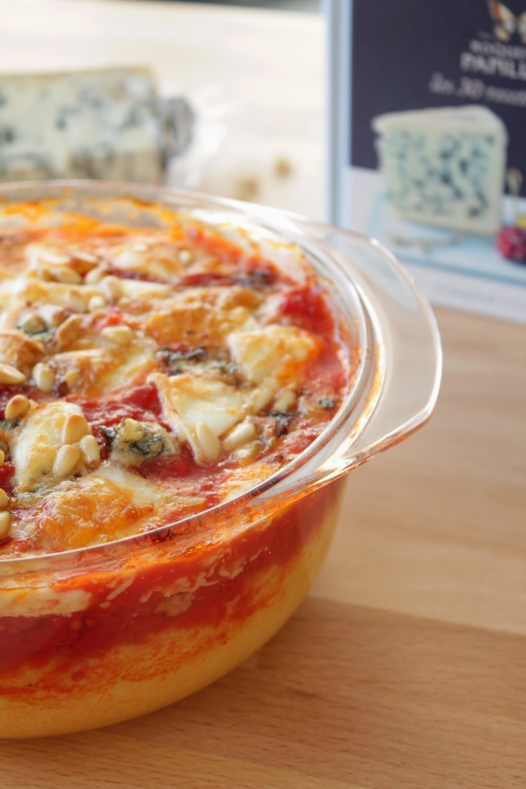 Aujourd'hui un plat familial pour le week-end avec gratin rapide à faire et délicieux. Nous avons beaucoup aimé l'association avec la douceur des tomates et la force du roquefort. Je me suis inspirée d'une recette issue du petit livre sur la photo.