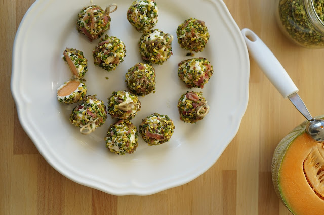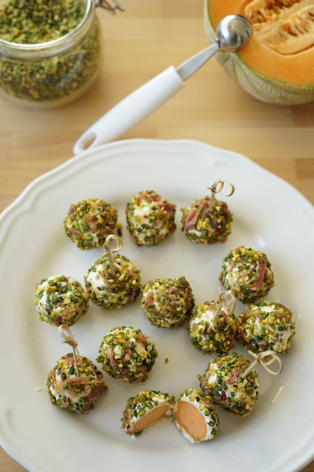super belles tes petites billes de melons belle association avec du chèvre et jambon bisous bonne journée claudine