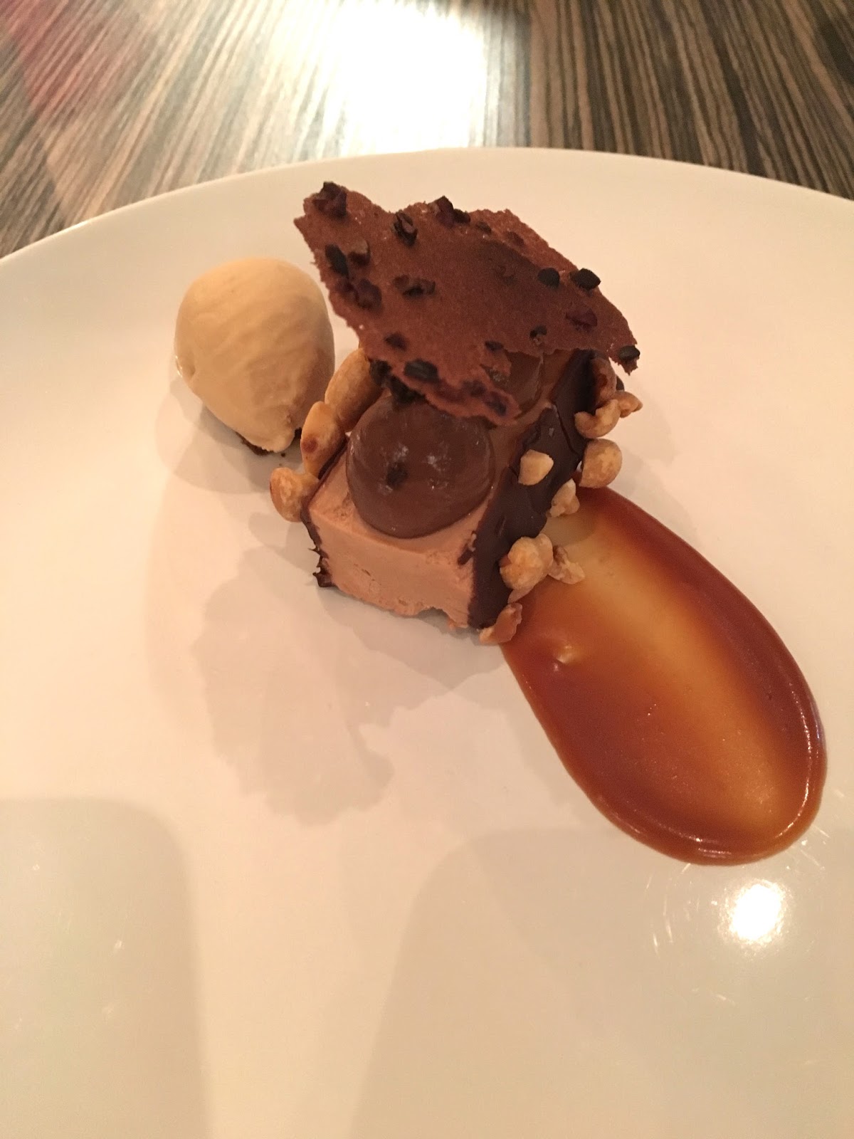 Dessert chocolaté : Mousse chocolat "caramelia" aux éclats de cacahuètes, caramel et fleur de sel