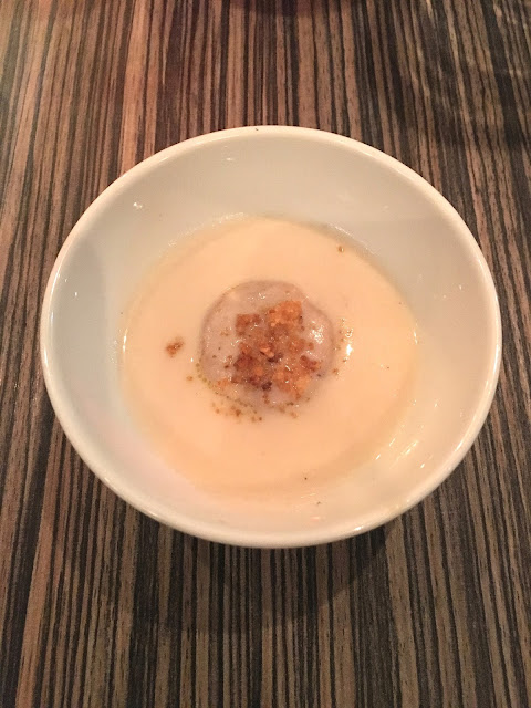 Mise en bouche : Velouté de panais, foie gras poêlé