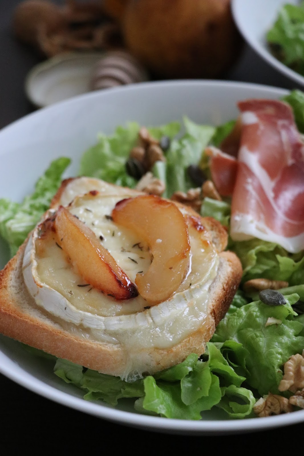 Une assiette gourmande avec une tartine sucrée-salée. J'aime beaucoup l'association du fromage de chèvre avec les fruits (comme les pommes, les figues ou les poires). Alors si vous êtes en manque d'inspiration pour le diner, cette salade est prête en 20 minutes !