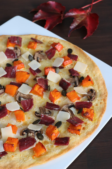 Une tarte fine composée de légumes de saison : potimarron et champignons. C'est une recette rapide à faire, délicieuse avec une salade verte. Le potimarron est un légume que je cuisine régulièrement, plusieurs recettes sont à venir. Sur le blog, il y déjà une recette de velouté de potimarron, patates douces et carotte avec un crumble aux graines.
